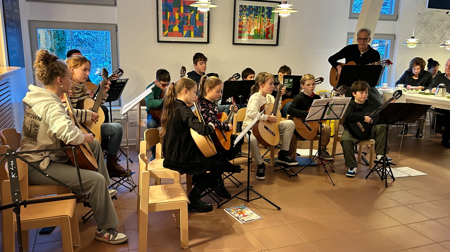 Die musikalische Unterhaltung übernahm die Gitarrenklasse der Kreismusikschule Ostholstein unter der Leitung ihres Lehrers Jan Kock. Die Kinder und Jugendlichen präsentierten einen beeindruckenden Auszug aus ihrem musikalischen Repertoire, zu dem Weihnachtslieder gehörten sowie auch Solostücke, die einige der jungen Künstler vortrugen.