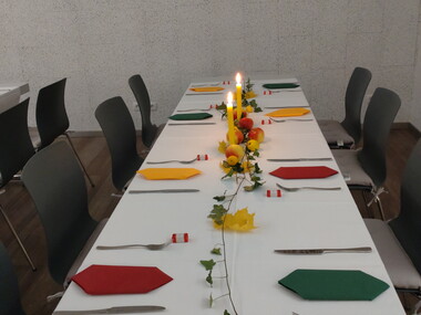Ein 2. Team hat sich um die Dekoration des Raumes gekümmert und das Ergebnis waren liebevoll geschmückte Tische. Allen fleißigen Händen ein herzliches Dankeschön. Die Veranstaltung war sehr harmonisch, es hat allen geschmeckt und jeder ist „hoffentlich“ satt geworden. Fazit: ein rundum schöner und gelungener Abend.