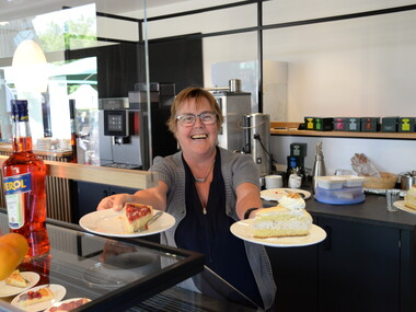 Die Mitglieder des Fördervereins haben wieder eine überwältigende Anzahl größtenteils selbst gebackener Kuchen gespendet. Bei gutem Wetter versammelten sich die zahlreichen Besucher vor dem Gastronomiebereich an den Tischen und auf den Bänken. Dort genossen sie in gelockerter Atmosphäre, vor und nach den Führungen durch die Opernscheune, Kaffee und Kuchen. Beides erhielten sie gegen eine Spende. Außerdem konnten sie Tee und erfrischende Getränke erwerben.